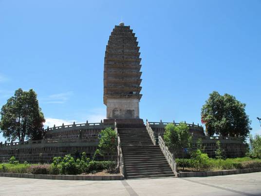 石砌塔基,平面上呈正方形,边长8.6米,周围包砌六级石质踏道。