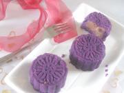 1.将紫薯洗净,蒸熟后去皮,用擀面棒压成泥。