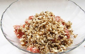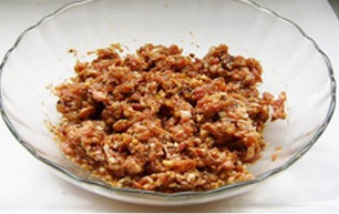 2. 猪肉馅中加香菇末、姜末、料酒、酱油、五香粉、鸡精、香油、盐腌制20分钟 |