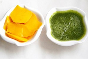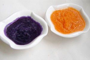 5. 甘蓝汁和面一团,芒果泥和面一团 |