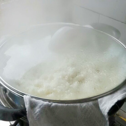 2. 粘米,也就是日常吃的大米就行。这里补充一下,因为是第一次做,所以经验不足。个人觉得米按比例混匀,淘洗后泡两小时,沥干后打碎,入锅蒸,会比较好熟哦 |
