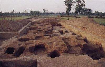 | 早商府城遗址 早商府城遗址位于焦作市西南10千米府城西北部的台地上,东西走向长约280米,南北走向长约300米,遗址面积近10万平方米。该遗址的重要部分是早商文化遗存,分布于遗址的中部,已经发现的遗迹有城址、宫殿基址、房基、灰坑等。城址平面成方形,周长约1200米,西城墙和北城墙保存较好,长度约为300米,地面暴露的部分高为2—3米,2001年6月,府城遗址被国务院公布为第五批全国重点文物保护单位。 |