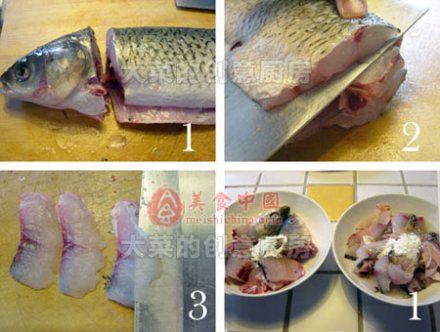 原料:选择草鱼、鲤鱼、鳜鱼或鲈鱼均可,食盐,鸡精,少量糖、料酒、芡粉,西芹,泡椒,葱姜蒜,醋