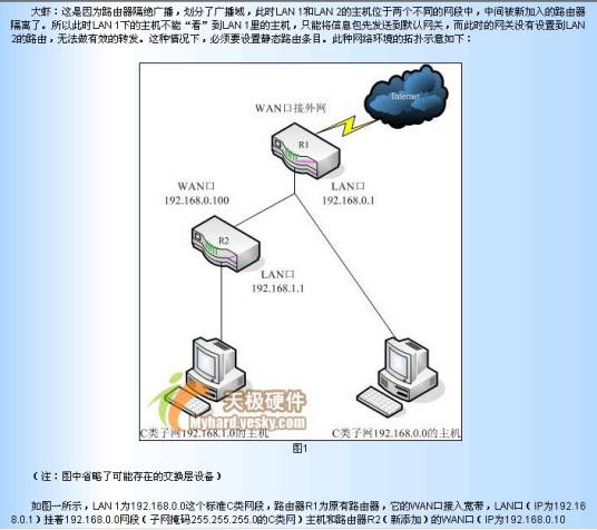 例,网关会知道所有的路由,如果一个路由器连接到网关,就可以配置默认路由,把所有的数据包都转发到网关。