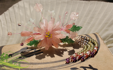 如果在发钗上装缀一个可以活动的花枝,并在花枝上垂以珠玉等饰物,这就成了另一种首饰,名为“步摇”,因为插着这种首饰,走起路来,随着步履的颤动,钗上的珠玉会自然的摇曳。《释名·释首饰》:“步摇,上有垂珠,步则摇曳。”说的就是这种情况。