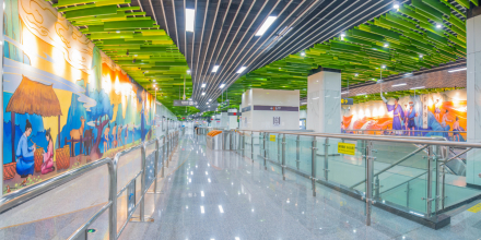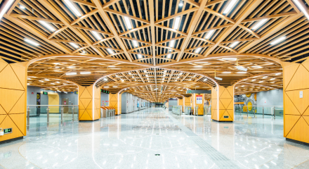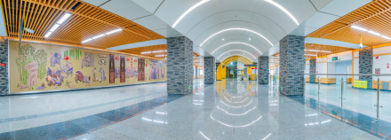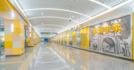 西南交大站 | 以“天堑变通途”为主题,提炼了西南交大象征性的桥梁、隧道、大门的拱形元素作为空间构成的基础要素,以表达“传承、纪念、学术、探索”的主旨;车站艺术品名为“天堑变通途”。 |