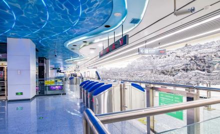 新平站 | 新平站位于新津区南部,其周边景区花舞人间被誉为 “全球郁金香展示时间最长景区”,属国家4A级旅游景区。站内设计采用七彩柱、环形、飘带几种元素衔接贯通,以“玉带连珠”形态呈现,造型别致、动感顺畅。艺术墙由提炼《五津风物》中记载的新津十二景,将花与新津十二景结合,呈现生态、自然、人文的新津旧景新貌。 |