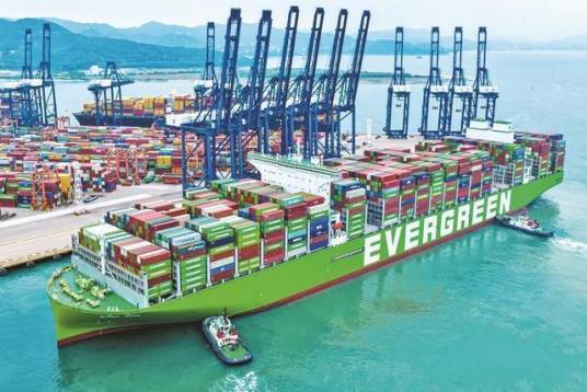 长为轮为目前全球最大集装箱船,船长400米,宽62米,甲板面积近4个足球场 。
