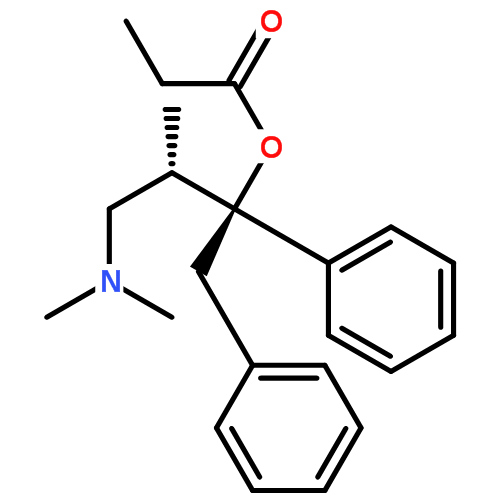 右丙氧芬结构类似美沙酮。临床用其盐酸盐。右丙氧芬主要与阿片μ受体结合,其作用与美沙酮相似,镇痛作用较弱,仅能用于缓解轻度到中度疼痛。几乎无镇咳作用。
