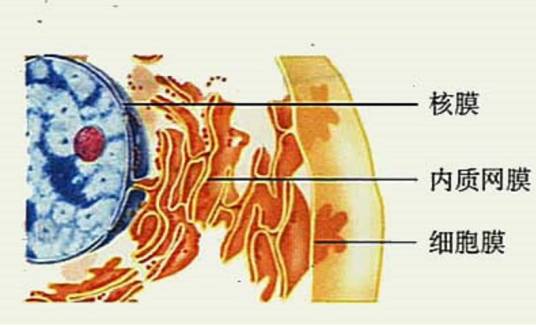 核膜外层的外表面附有核糖体颗粒。有的细胞中,外膜与粗面内质网膜相连续,因为内质网膜与质膜是连续的,所以核膜间隙似乎与细胞外相通。