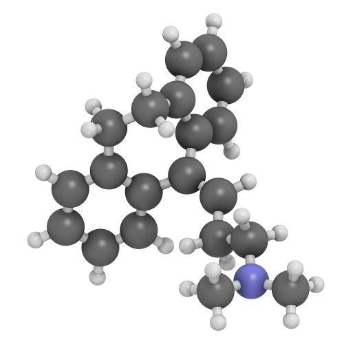 马普替林(Maprotiline)为非典型抗抑郁药,虽然属于三环结构,但是中央杂环结构与三环类抗抑郁药(TCAs)有明显不同。能阻断中枢神经突触前膜对去甲肾上腺素(NA)的再摄取,但不能阻断5-羟色胺(5-HT)的再摄取作用。本品抗抑郁效果与丙米嗪、阿米替林相似,但奏效快,不良反应少。患者用药后,精神症状、对环境的适应能力及自制力均有改善。对睡眠的影响与丙米嗪不同,延长快速眼球运动睡眠(REMS)时间。镇静作用与TCAs相当。