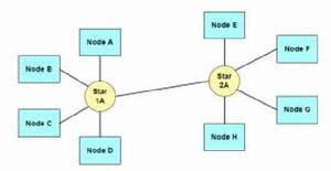 在星型拓扑结构中,网络中的各节点通过点到点的方式连接到一个中央节点(又称中央转接站,一般是集线器或交换机)上,由该中央节点向目的节点传送信息。中央节点执行集中式通信控制策略,因此中央节点相当复杂,负担比各节点重得多。在星型网中任何两个节点要进行通信都必须经过中央节点控制。
