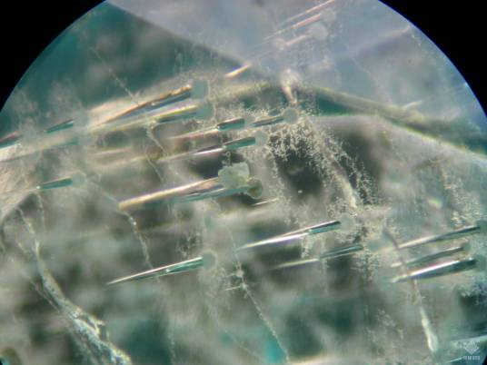有些矿物经常含有微量的放射性元素,如锆石常含有放射性元素U和Th,由于它们的存在不但可以破坏矿物本身的晶体结构,同时,当锆石作为包体出现在其他矿物中时,放射性元素在破坏锆石晶格的同时,还会使锆石的体积增大,也可对主晶的矿物晶格产生破坏,产生的应力可导致在锆石周围形成放射状的裂隙等痕迹,就是我们常见的“锆石晕”