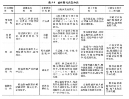 岩体中结构面和结构体的组合关系叫岩体结构,其组合形式叫岩体结构类型。见下表不同结构类型的岩体,其力学性质有明显差别。