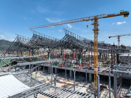 2、针对甬广场主站房钢桁架施工难题,建设方自主研发“钢结构健康监测系统”,对钢结构施工全过程的应力、变形及温度变化进行实时监测,进一步提升了钢结构的安全平稳 。