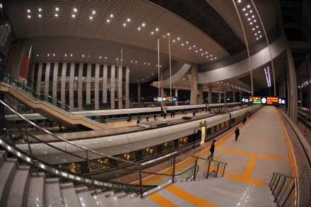 2、杭深场站房采用了大跨度现浇预应力清水混凝土竖向弧形箱梁,建设方在施工中采用全站仪精确定位,分层分段浇筑确保箱梁的弧度精度,控制曲线造型 ;