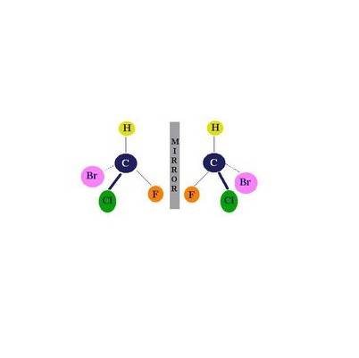 与镜象不能重叠的分子,称为手性分子。分子的构造相同,但构型不同,形成实物与镜象的两种分子,称为对映异构体(简称:对映体)。