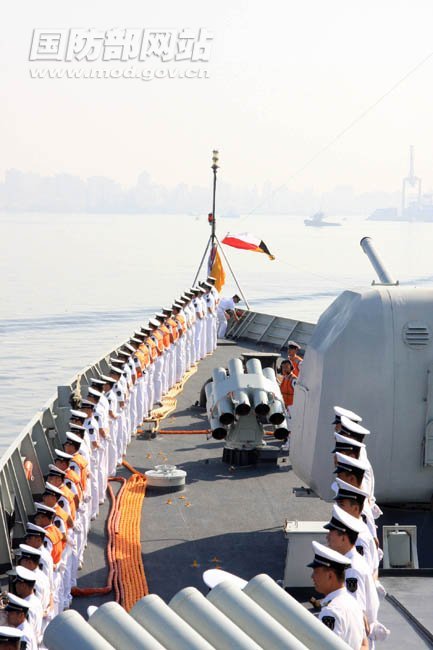 2010年7月26日上午上午9时(北京时间14时),中国海军第五批护航编队广州号导弹驱逐舰、巢湖号导弹护卫舰组成的出访编队,抵达埃及亚历山大港,应邀对阿拉伯埃及共和国进行为期5天的正式友好访问。这也是中国海军护航编队首次访问埃及。威武雄壮的军舰上悬挂满旗,身着全白服装的官兵在甲板一侧整齐列队。我驻埃及大使、驻亚历山大总领事和使领馆工作人员以及华侨华人代表等到码头迎接,并参观了军舰。
