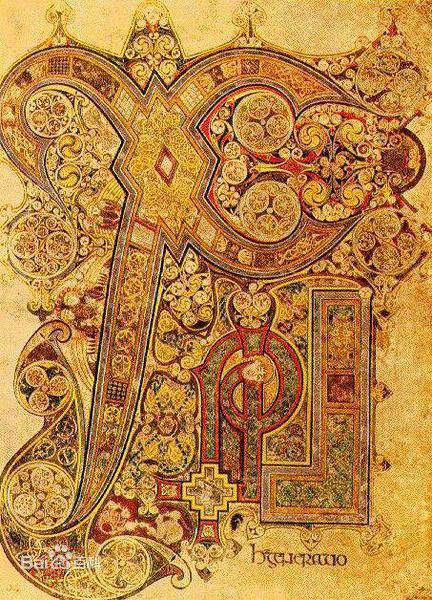 凯尔经(或译凯尔书卷,BOOK of Kells;爱尔兰语:Leabhar Cheanannais)这是一部泥金装饰手抄本,是早期平面设计的范例之一。凯兰书卷约在公元800年左右由苏格兰西部爱欧那岛(Iona)上的天主教修士凯尔特绘制。这部书由四部新约圣经福音书组成,语言为拉丁语。这是一本有着华丽装饰文字的圣经福音手抄本,每篇短文的开头都有一幅插图,总共有两千幅。虽然福音书的文本包括几个从圣经的更早的版本Vetus Latina的段落,但主要是根据武加大译本写成。它是西方书法的代表作,亦代表了海岛艺术绘画的高峰。它也被大众认为是爱尔兰最珍贵的国宝。