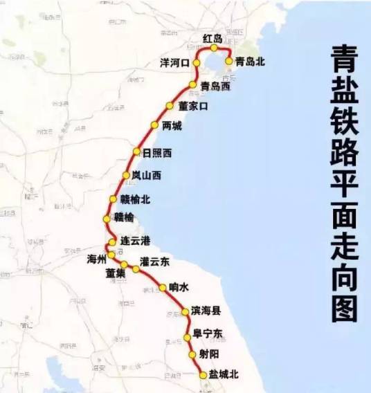 沿线城市:青岛、日照、连云港、盐城