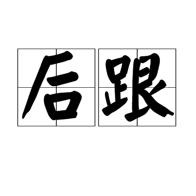 后跟,汉语词语,指脚跟;设计、安置在或构成某物的底部后跟的一块东西。