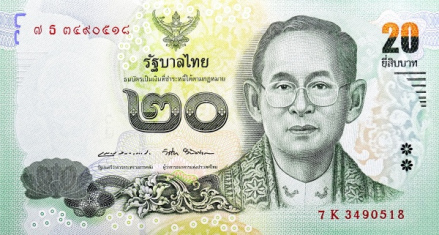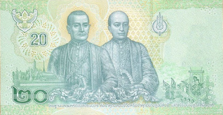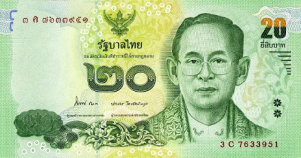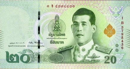 20 baht | 138 x 72 mm | 绿 | 普密蓬·阿杜德 | 兰甘亨大帝 | 2013年4月1日 |