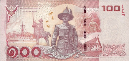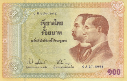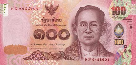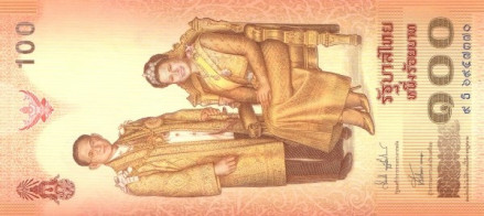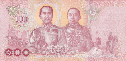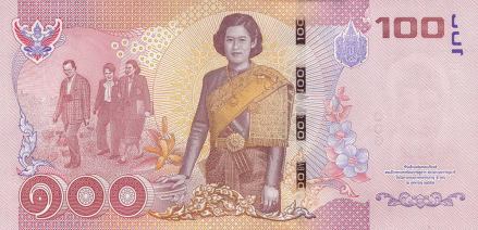 100 baht | 150 x 72 mm | 红 | 普密蓬·阿杜德 | 郑信大帝 | 2015年2月26日 |
