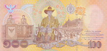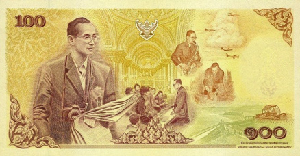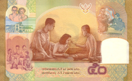 发行于1996年7月9日,于澳大利亚印制完成,尺寸为9.1x 17.1cm,正面为国王拉玛九世身着华服坐在王座上的肖像,背面为国王陛下工作于皇室发起的各个领域工程项目的基层。