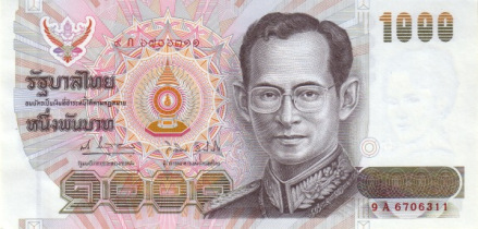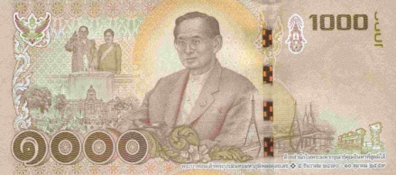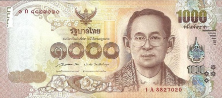 1000 baht | 162 x 72 mm | 棕 | 普密蓬·阿杜德 | 拉玛五世 | 2015年8月21日 |