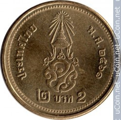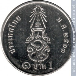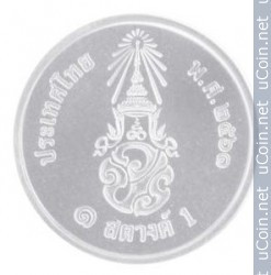 1铢正面为普密蓬国王陛下在位君主(拉玛九世)肖像及国王于1950年加冕典礼在Sutthaisawan Prasat宫发表演讲的画面。