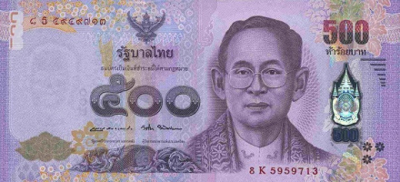 500 baht | 156 x 72 mm | 紫 | 普密蓬·阿杜德 | 拉玛一世 | 2014年5月12日 |
