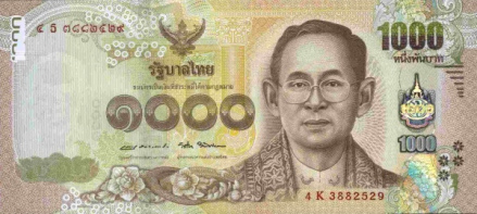 泰铢(ISO 4217码:THB)是泰国官方货币,由泰国中央银行泰国银行发行,1铢等于100萨当(satang)。自第9序列至第16序列泰铢每种纸币、铸币的正面均印有、铸有泰王拉玛九世普密蓬·阿杜德头像。自2018年4月6日起,发行第17序列泰铢,纸币、硬币均改为泰王拉玛十世玛哈·哇集拉隆功头像。泰国流通货币的有20、50、100、500及1000铢等五种面额的纸币和25、50萨当及1、2、5、10铢六种铸币。1铢等于100萨当。