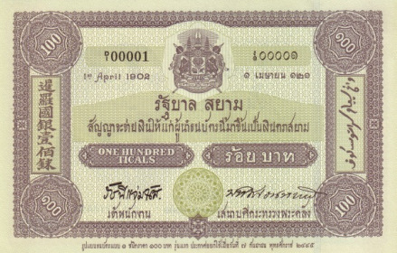 1902年11月27日,铢不再与纯银挂钩,因为银价相对于金本位的货币大幅贬值。当年9月19日,泰国发行首批纸币,面值5、10、20、100及1000tical。