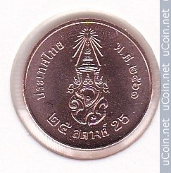 5铢 | 24 mm | 6 g | 铜填白铜 | Benchamabophit Temple | 1988 | |