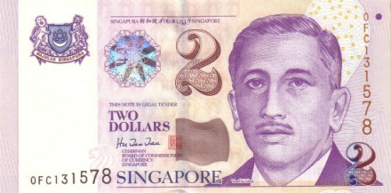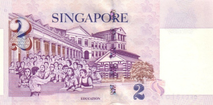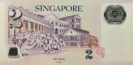 新加坡2元纸币塑胶钞票沿用现有2元纸钞的颜色和图案, 包括正面是首任总统尤索夫的肖像,背面以教育为主题的图案设计。