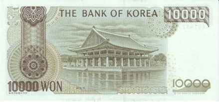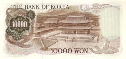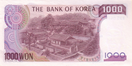 是于1983年6月11日发行的,仍在发行当中。纸面规格做了改动,为151x76mm,凹版印刷。纸币的背面仍是陶山书院的图案,正面仍以退溪李滉的头像为象征,不同的是前版的无穷花变成了投壶。