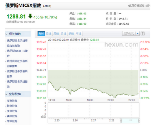俄罗斯股市(Russian stock market)受乌克兰紧张局势影响,俄罗斯股市周一开盘大跌,盘中一度暴跌逾10%,创2008年11月以来最大跌幅。据悉,与大部分新兴市场国家一样,俄罗斯股市一直处于熊市之中,当前点位较2011年4月高点低约27%。与此同时,俄罗斯央行宣布将基准利率从5.5%上调至7%,即刻生效。在卢布持续贬值的背景下,俄罗斯央行此举意在收紧货币政策,缓解市场波动。此前的2月14日,俄罗斯央行连续第16次维持基准利率不变,但曾强调,如果最近市场上对俄罗斯卢布的抛售有催高通胀的风险,俄罗斯央行将采取加息行动。俄罗斯央行的加息举动,也给予俄罗斯股市重创。周一早些时候,一直表现不佳的俄罗斯卢布跌至纪录新低,同时,俄罗斯Micex证券交易所开盘下跌7.9%,创下自2009年以来的最大跌幅。当该国央行宣布加息后,股市跌幅扩大至超过10%。2022年3月24日,俄罗斯央行决定开始恢复莫斯科交易所33只股票的交易,同时禁止卖空俄罗斯股票。3月26日,俄罗斯央行宣布,从3月28日起恢复莫斯科证券交易所所有俄罗斯股票的交易,交易时间为莫斯科时间10时至14时。
