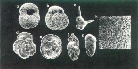 钙质超微化石的应用亦局限于侏罗纪以来的海相地层,其中侏罗纪的已描述70属,但尚缺乏成熟的化石划分方案。白垩纪时超微化石的属种最为丰富,H.西辛格(1977)根据西欧剖面分为26个化石带 (CC1-CC26),P.H.罗思 (1978)据北大西洋材料分出23个化石带(NC1-NC23);新生代的化石分带运用最广,E.马蒂尼(1971)据陆地剖面分出早第三纪25个化石带 (NP1- NP25)和晚第三纪以来21个化石带(NN1- NN21);D. 布克里(1973,1975) 以及大方和布克里(1980)以深海剖面为主分出早第三纪19个带(CP1- CP19)和晚第三纪以来15个带(CN1-CN15) 。在中生代地层中,分带化石除颗石类外有微锥石(Nannoconus)等;在第三纪地层中,主要靠盘星石(Discoaster)、螺球石 (Helicospheare)、楔石(Sphe-nolithus)等。其中特别重要的是盘星石类化石,演化迅速、规律明显,以古新世到上新世由笨重变细弱,古新世- 始新世时的类型枝数多,枝间缝合线弯曲、呈玫瑰状,中新世- 上新世枝数变少,枝间缝合线直、呈星状,是第三纪地层划分的良好根据。中国如南海北部与台湾的第三纪,钙质超微化石已是地层划分的主要依据之一。然而钙质超微化石个体过小,容易再沉积和污染,亦易于溶解、重结晶和自生加大,为鉴定和应用带来困难;加以大多属种限于温暖海区,上述化石分带主要只适用于较低纬度区。