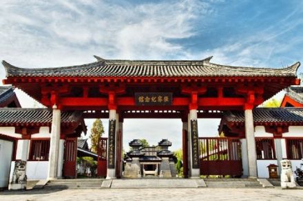 | 张骞纪念馆 省级文物保护单位,是为纪念西汉著名外交家、探险家、丝绸之路开拓者张骞而建,包含有张骞墓等文物景点,位于城固县城以西三千米处的博望镇饶家营村。张骞墓座北朝南,东西宽15米,南北长15米,高8米,呈覆斗形,周围有古柏环绕,墓前有石碑四通、汉代石虎一对。大门前竖高8米、由座杵、斗三部分组成的石华表一对。1988年修起了雄伟壮丽的汉代阙式大门门楼,铺设了墓园甬道,栽种了名贵花木。 |