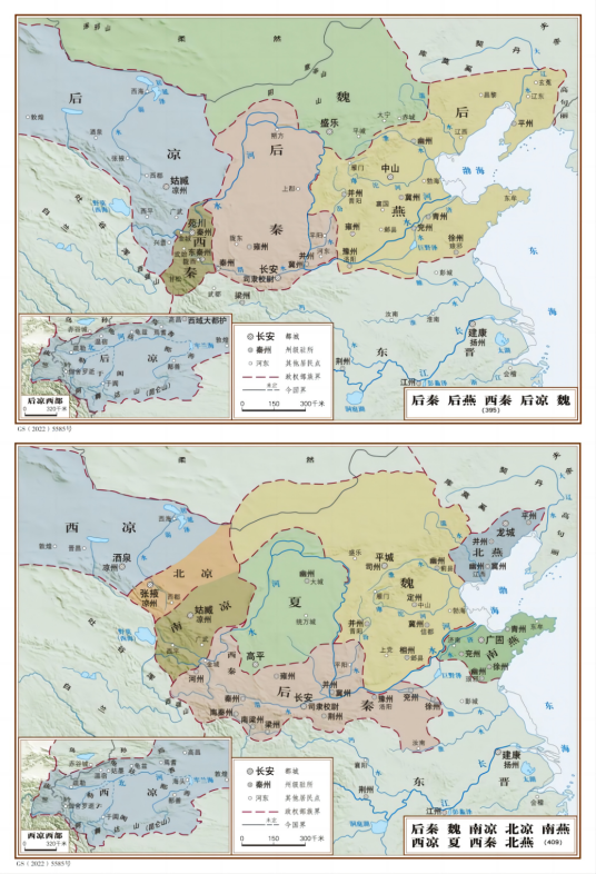 征服陇西之后,姚兴的兵马越过黄河继续西进,先后消灭后凉,逼降南凉、北凉和西凉,占据西方重镇姑臧(今甘肃武威)。这样,后秦的疆域“南至汉川,东逾汝颍,西控西河,北守上郡”(《读史方舆纪要》),成为十六国后期国力仅次于后燕的强盛王朝。