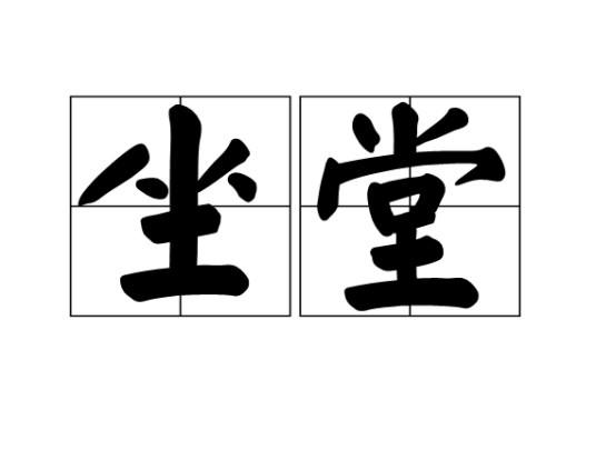 坐堂,指官吏出庭命理案体处理事务,因坐于厅堂而得名。“清朝的县官坐堂,往往两造各责小板五百完案。”(鲁迅《华盖集·并非闲话》)足以证明。由此引出另一涵义,在民间指中医师行医之处。