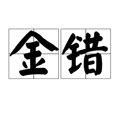 金错是在铸造的青铜器表面上用金丝或金片镶嵌成各种华丽秀美的花纹、图案和文字的一种饰金工艺。在春秋战国时期已经很发达。