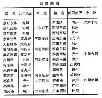 北宋初分全国为十三道,至道三年(公元997年),共分十五路,在名称上改道为路,后析为十八路,又析为二十三路。崇宁五年(公元1106年),开封府升为京畿路。建炎南渡后,宋朝政治经济中心转移至两浙东路,史称南宋,绍兴十二年(公元1142年)全国分为十六路。