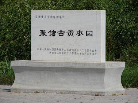 聚馆古贡枣园,位于河北省沧州市黄骅市齐家务乡娘娘河畔的聚馆村。是中国现存最大最古老的古冬枣园,2006年5月,聚馆古贡枣园被国务院批准为第六批全国重点文物保护单位。 开创了中国文物保护的新门类,是迄今为止,唯一一处植物类全国重点文物保护单位,有数千年历史的冬枣,成为国宝,在新时代得到了科学的保护。