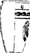 土缸,口径25厘米、底15厘米、高47.5厘米,圆唇外卷、鼓腹、平底.有孔。下腹部施斜行划纹,上腹部绘带状图案。先把要绘图的地方磨光,上红、白陶衣,后用红褐彩绘出平行线纹和十二组类似贝纹的图案。另一件,下腹 部凿孔、形制同上。口径20.7.底径14.5、高38.5厘米 。 |