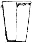 土缸,口径23.5厘米、底18.5厘米、高40.5厘米。方唇、直桶形、三鹰咀对称、纽下饰斜行划纹 。 |