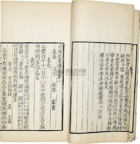 宋司马光撰,考《隋书·经籍志》,谢元有《内外书仪》四卷,蔡超有《书仪》二卷。以至王宏、王俭、唐瑾皆有此著。又有《妇人书仪》八卷、《僧家书仪》五卷。盖《书仪》者,古私家仪注之通名。《崇文总目》载唐裴茝、郑馀庆、宋杜有晋、刘岳尚皆用斯目。光是书亦从旧称也。凡《表奏公文私书家书式》一卷、《冠仪》一卷、《婚仪》二卷、《丧仪》六卷。《朱子语录》:“胡叔器问四先生礼,朱子谓:二程与横渠多古礼,温公则大抵本《仪礼》而参以今之所可行者。要之温公较稳,其中与古不甚远,是七分好。”又《与蔡元定书》曰“《祭仪》只是于温公《书仪》内少增损之”云云,则朱子固甚重此书。后朱子所修《祭仪》为人窃去,其稿不传。则此书为礼家之典型矣。马端临《文献通考》载其父廷鸾之言,谓《书仪》载妇入门之日即拜先灵,废三月庙见为非礼,引《朱子语录》,以为惑于陈针子先配后祖一语。又谓《檀弓》明言“殷练而禘,周卒哭而禘”,孔子善殷而云周已戚,《书仪》载祔庙在卒哭后,于礼为太遽。案杜预《左传注》谓礼逆妇必先告庙而后行,故楚公子围称告庄共之庙。郑忽先逆妇而后告庙,故为先配而后祖。其事与庙见无关,光未必缘此起义。又古者三月庙见,乃成为妇,故有反马之礼;有未及三月而死,则仍归葬母家之礼。后世于亲迎之日即事事成其为妇,三月之内设有乖忤,断不能离婚而逐之;设有殀折,断不能轝柩而返之也。何独庙见之期坚执古义乎?至于殷练而祔,孔子善之,其说虽见《檀弓》,考《宋史·礼志》所载祔庙之仪。实从《周礼》。国制如是,士大夫安得变之?亦未可以是咎光也。他如深衣之制,朱子《家礼》所图,不内外掩袭,则领不相交。此书释曲袷如矩以应方句,谓“孔《疏》及《后汉书·马融传注》所说,似如颈下别施一衿,映所交领,使之正方,如今时服上领衣。不知领之交会处自方,疑无他物”云云,阐发郑《注》交领之义最明。与《方言》“衿谓之交”郭璞《注》为“衣交领”者,亦相符合。较《家礼》所说,特为详确。斯亦光考礼最精之一证矣。《礼记大全·檀弓》“忌日不乐”条下,载刘璋之说,引司马氏《书仪》“忌日则去华饰之服,荐酒食”云云,此本无之。然此本首尾完具,尚从宋本翻雕,不似有所阙佚者。或刘璋偶误记欤?