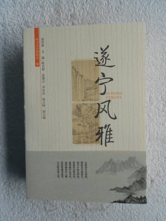 《遂宁风雅》,主编:胡传淮;副主编:陈名扬 、岳敦云 、李宝山 、胡云柯,2017年1月现代出版社出版。蜀中遂宁,自古为巴蜀奥区,历代为郡、州、府、县、市。千百年来,人文辐辏,乃东川巨邑。编注《遂宁风雅》一书,一为挖掘遂宁之人文内涵,使乡人有所激发,共谋振兴遂宁之事业;一为宣传遂宁之历史文化,提升遂宁的城市知名度,促进诗词创作、旅游产业的发展。全书分为前言、目录、正文、后记等四个部分。涉及范围:今遂宁市所辖两区三县(船山区、安居区、射洪县、蓬溪县、大英县)。涉及时间:先秦至民国(下限-1949)。内容要求:凡属书写遂宁两区三县之自然景物、历史遗迹、风俗习惯、人物交游等方面的诗词均编入。编写时选注相关生僻字词或相关典故。编排要求:诗歌作者作品按照时间先后排序。全书分上下两编。上编为《本地诗人咏遂宁》,下编为《外地诗人咏遂宁》,籍贯或姓名不清者,则纳入《附录》。全书合计收录诗家近400人,诗作1200余首。