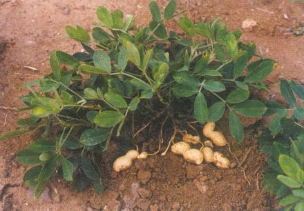 落花生(Arachis hypogaea L.),豆科落花生属一年生草本植物,根部具根瘤;茎直立或匍匐,有棱;托叶被毛,小叶卵状长圆形或倒卵形,先端钝,基部近圆,全缘;花冠为黄色或金黄色;花柱伸出萼管外;荚果长,膨胀,果皮厚;花期6到7月;果期9到10月。落花生开花受精之后,子房要落到黑暗的地里去暗暗地生长结果,因此得名落花生。落花生原产于南美洲巴西,现世界各地广泛栽培,落花生在中国以山东、河北、河南,苏、皖两省北部等地区种植较多。落花生性喜高温干燥,适宜生于气候温暖、生长季节较长、雨量适中的沙质土上。落花生的繁殖方法为种子繁殖。《纲目拾遗》记载落花生具有健脾养胃、润肺化痰的功效,主治脾虚反胃、乳妇奶少、脚气、肺燥咳嗽、大便燥结。落花生仁富含脂肪、蛋白质,为营养丰富的食品,并可制糖果、点心。花生油供食用或作为工业原料,油粘可制成副食品或作饲料;花生壳含丰富的纤维素,为饲用酵母、酒精及糖醛等的原料,具有很高的经济价值。落花生在纺织工业上用作润滑剂,机械制造工业上用作淬火剂。