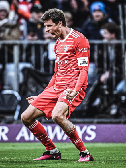 2023年1月29日,德甲第18轮,穆勒助攻萨内破门,帮助球队在主场1-1战平法兰克福 。2月2日,德国杯1/8决赛,穆勒助攻穆西亚拉破门,帮助球队在客场4-0战胜美因茨,并以53场胜利成为德国杯历史上胜场次数最多的球员;以63次出场追平塞普·迈尔,并列德国杯历史出场次数最多 。2月6日,德甲第19轮,穆勒头槌建功,帮助球队在客场4-2战胜沃尔夫斯堡 ,并以427场德甲比赛追平盖德·穆勒,并列成为拜仁队史出战联赛次数最多的外场球员 。2月18日,德甲第21轮,穆勒首发出战,以429次的德甲出场数追平卡恩,与卡恩并列为拜仁队史德甲出场次数第二多的球员 。2月27日,德甲第22轮,穆勒完成助攻双响,帮助球队在主场2-0战胜柏林联合 。3月5日,德甲第23轮,穆勒助攻舒波-莫廷进球,帮助球队在客场2-1战胜斯图加特 。至此,穆勒德甲生涯已直接参与300球,成为Opta自2004-05赛季有统计以来第二位达成这一里程碑的球员 。3月8日,欧冠1/8决赛次回合 ,穆勒贡献3次关键传球和4次抢断 ,帮助球队在主场2-0战胜巴黎圣日耳曼 。4月2日,德甲第26轮,穆勒完成双响,帮助球队在主场4-2战胜多特 。4月4日,德国杯1/4决赛主场迎战弗赖堡,穆勒首发出战 ,以64场德国杯比赛超越塞普·迈尔(63场),成为代表拜仁在德国杯出场次数最多的球员 。5月21日,德甲第33轮,穆勒助攻格纳布里首开纪录,最终球队在主场1-3被莱比锡逆转,丧失争冠主动权 。5月27日,德甲第34轮,穆勒首发登场,帮助球队在客场2-1战胜科隆,夺得冠军 ,以12次夺冠成为这项赛事历史上夺冠次数最多的球员 ;穆勒和诺伊尔也是仅有的两位亲历拜仁德甲11连冠的球员 。